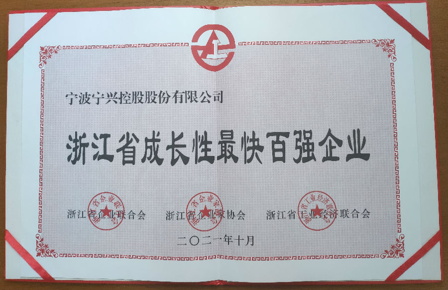 寧興控股首次獲得“浙江省成長(zhǎng)性最快百?gòu)?qiáng)企業(yè)”榮譽(yù)稱號(hào)。
