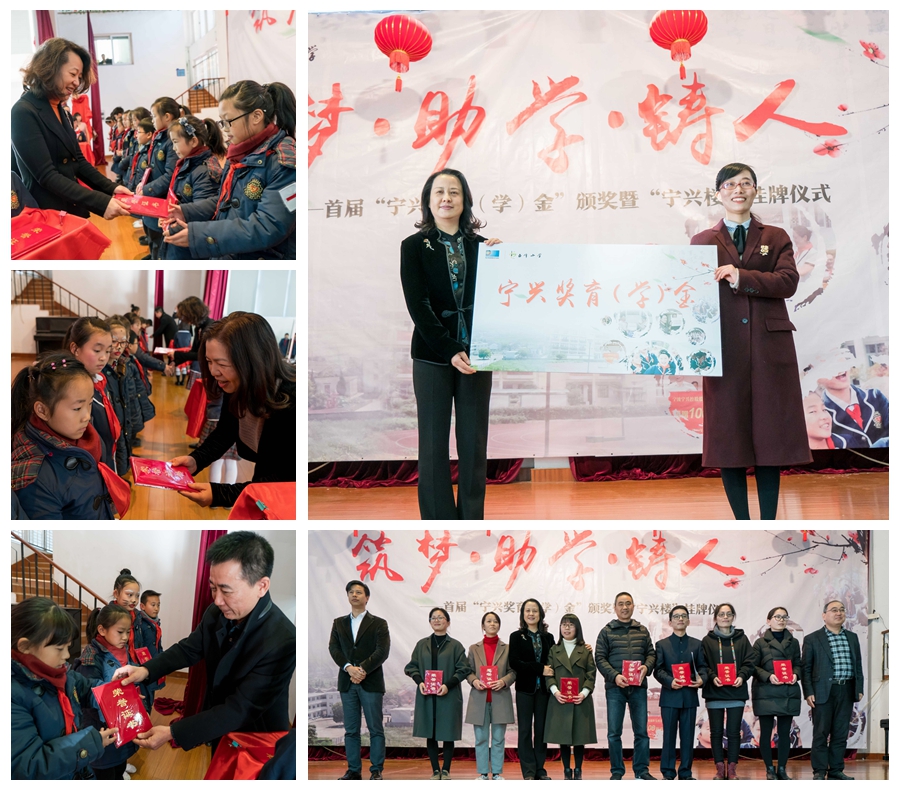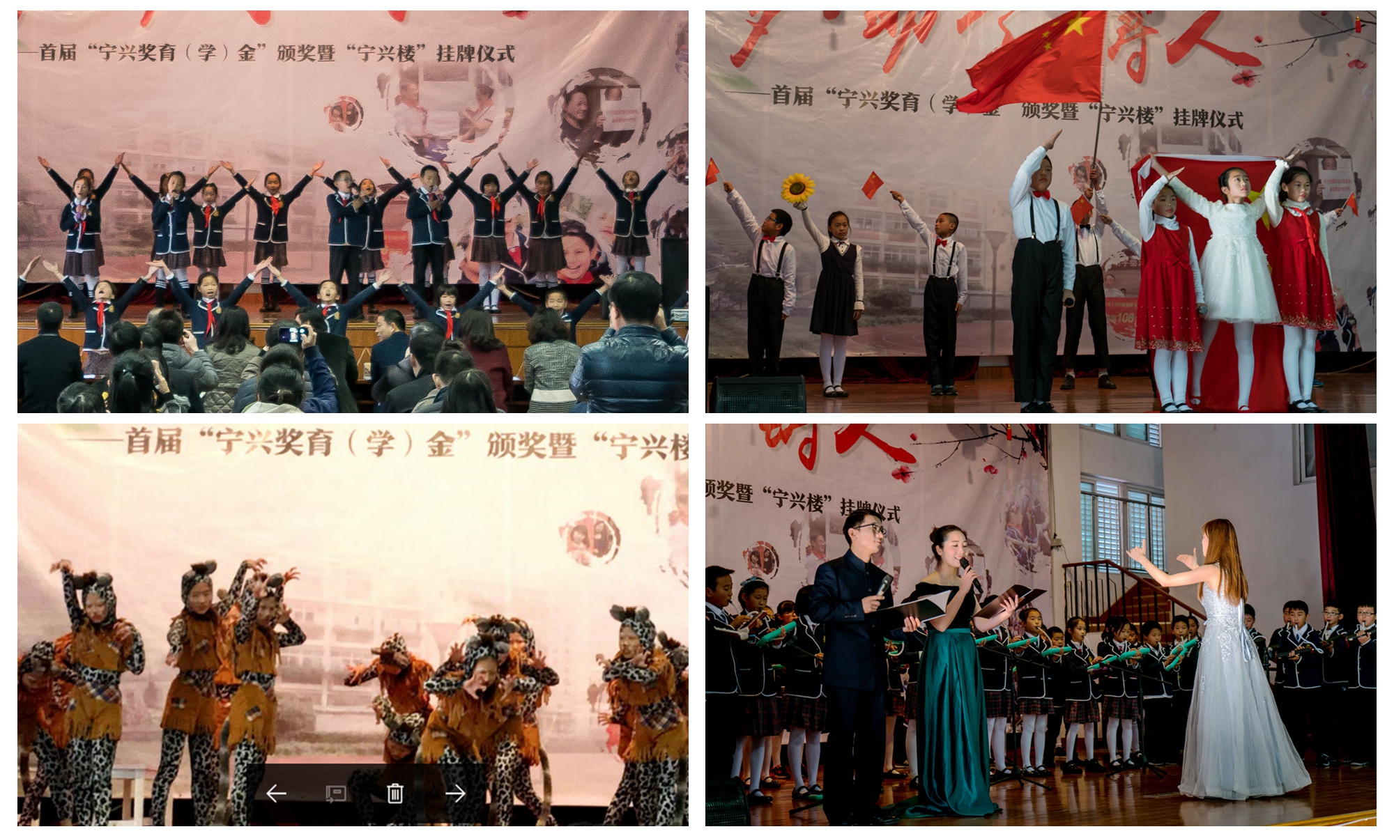 Mrs. Gao, on behalf of the Company, made the donation of “Ningshing Educational Charity Fund” at the activity scene and together with all the visiting guests awarded the prize to teachers and students. Then, Mrs.Gao Ping, Mr.Wang Mingliang, Mr.Chen Guanjun and Mrs.Zhang Weiya, unveiled the nameplate of “Ningshing Building” together. The words on the nameplate were written by Mr.Wu Yigang, the chairman of Ningshing Holdings.
