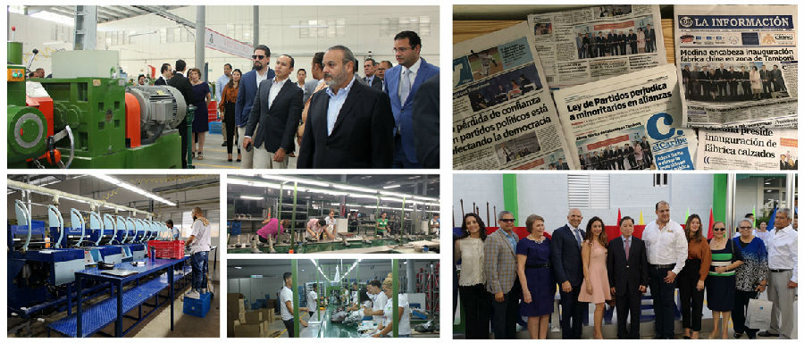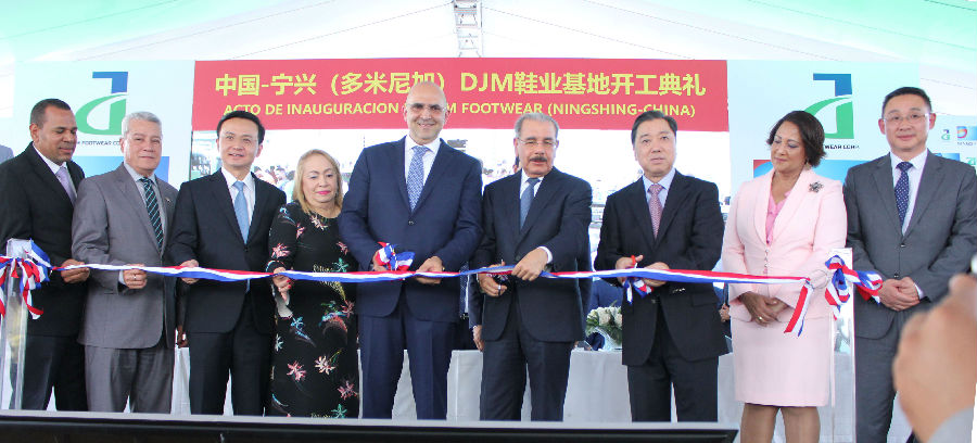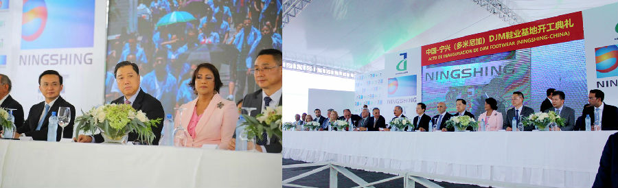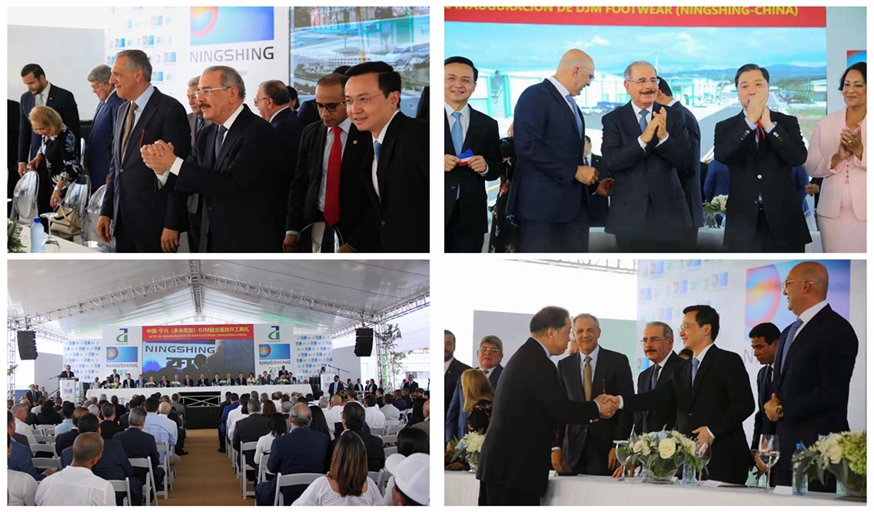 China and Dominican established formal diplomaticrelations on May 1 this year. As the first industrial project of Chineseenterprises after the establishment of diplomatic relations between China andDominican, the opening ceremony of Ningshing DJM footwear had been highlyvalued and aroused widespread attention. The Dominican President, Mr. Danilo Medina Sánchezand Chinese Ambassador to Dominican, Mr. Zhang Run were invited to thecommencement ceremony. President Medina was accompanied by top-rankingofficials from the Dominican government. Wu Yigang, Chairman of NingshingHoldings, Huang Yongzeng, Vice President of Ningshing Holdings, Zhang Lei,Executive Vice President of Ningshing Trade Group, Tong Xiaojian, GeneralManager of DJM Footwear Co, Xu Guangjie, Deputy General Manager of DJM FootwearCo., and the head of departments of Ningshing, Mrs. Gu Yilin, and Mr. Sheng Bin,composed a seven-member delegation to attend the commencement ceremony. Therepresentatives from Dominican Chamber of Commerce and companies were alsoinvited to the ceremony. A total of more than 260 people gathered together to witnessand celebrate the official launching of Ningshing (Dominican) DJMfootwear industry base.
