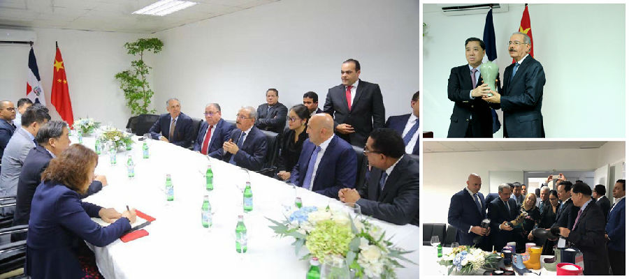 Before theceremony, Dominican President Medina had a private interview with Chairman Wu Yigangand the representatives of Ningshing DJM. Chairman Wu Yigang presented a giftto President Medina.