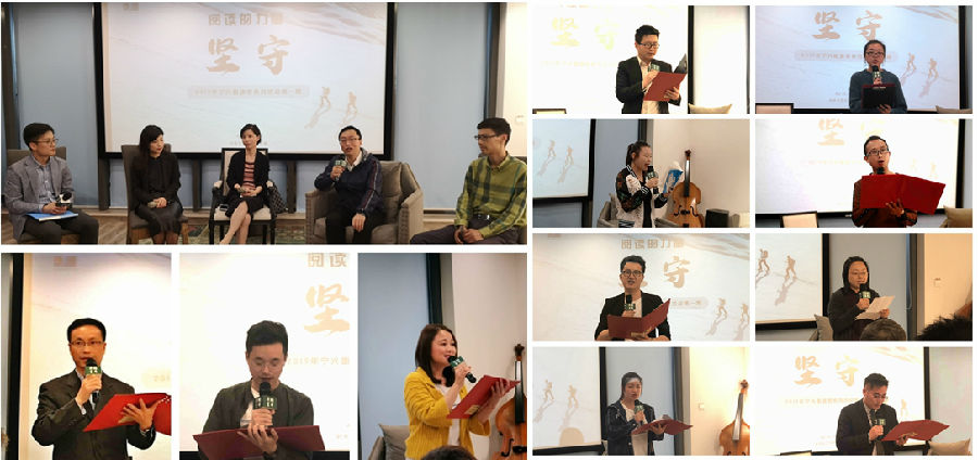 活動過程中,張旦恒、周默、翁敏敏等11名來自各公司的朗讀者圍繞“堅守”主題,朗誦了《堅持》、《心容諸子,堅守責任》、《品質(zhì)》等優(yōu)秀作品,并分享了這些作品帶來的生活和工作的感悟和激勵,引起現(xiàn)場強烈共鳴。吳雪泳、楊喆芳、沈月紅、徐悅來等同臺交流,分享關(guān)于閱讀和堅守的故事,鼓勵寧興青年堅持閱讀,堅守初心。