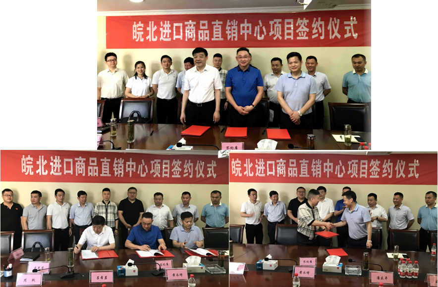為更好地發(fā)揮公司與安慶經(jīng)濟(jì)開(kāi)發(fā)區(qū)合作共建的安慶皖西南進(jìn)口商品直銷(xiāo)中心的示范作用,擴(kuò)大在皖北地區(qū)的市場(chǎng)影響,加速進(jìn)口直銷(xiāo)店的布局,寧興控股所屬寧興海鑫與安徽蒙城經(jīng)濟(jì)開(kāi)發(fā)區(qū)管委會(huì)、蒙城縣開(kāi)發(fā)區(qū)興蒙投資有限公司三方合作共建“寧興海鑫皖北進(jìn)口直銷(xiāo)中心項(xiàng)目”。2019年6月5日上午, 合作項(xiàng)目簽約儀式在亳州蒙城縣經(jīng)濟(jì)開(kāi)發(fā)區(qū)的會(huì)議室舉行。寧興控股總裁黃永增、安徽蒙城經(jīng)濟(jì)開(kāi)發(fā)區(qū)管委會(huì)主任王家驥、蒙城縣開(kāi)發(fā)區(qū)興蒙投資有限公司董事長(zhǎng)鄭軼代表三方進(jìn)行現(xiàn)場(chǎng)簽約。同時(shí),項(xiàng)目的具體運(yùn)營(yíng)方----寧興海鑫與當(dāng)?shù)氐那f子進(jìn)出口貿(mào)易公司簽訂合作協(xié)議,由雙方出資成立安徽寧興國(guó)際貿(mào)易有限公司,共同建設(shè)皖北進(jìn)口直銷(xiāo)中心項(xiàng)目。