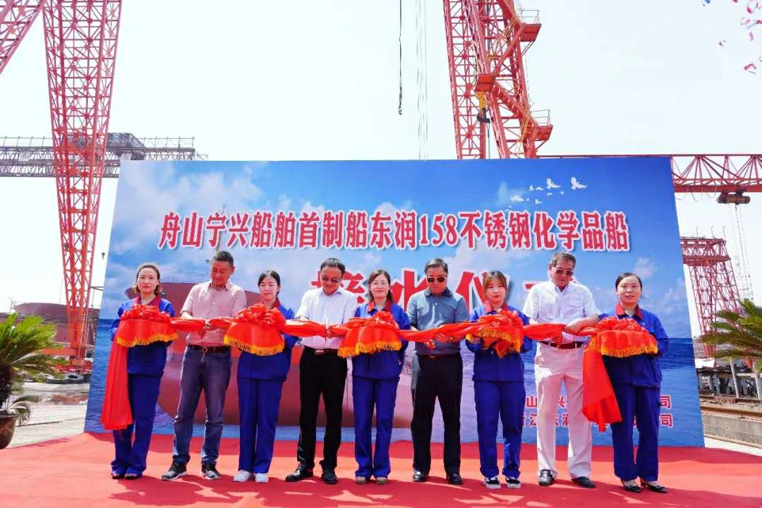 9月4日上午,舟山寧興船舶首制船“東潤(rùn)158”不銹鋼化學(xué)品船接水儀式在舟山寧興船舶廠區(qū)成功舉行。接水儀式由舟山寧興船舶和船東單位浙江東潤(rùn)海運(yùn)公司共同舉辦。寧興控股董事長(zhǎng)吳以剛、總裁黃永增、副總裁王文彤,及船東東潤(rùn)海運(yùn)董事長(zhǎng)周信國(guó)、總經(jīng)理周祖國(guó)等出席,應(yīng)邀參加接水儀式的還有寧興船舶合作伙伴寧波外企董事長(zhǎng)錢光發(fā)、中國(guó)船級(jí)社舟山辦事處副主任夏普鎮(zhèn),以及“東潤(rùn)158”施工單位代表、供應(yīng)商代表等。