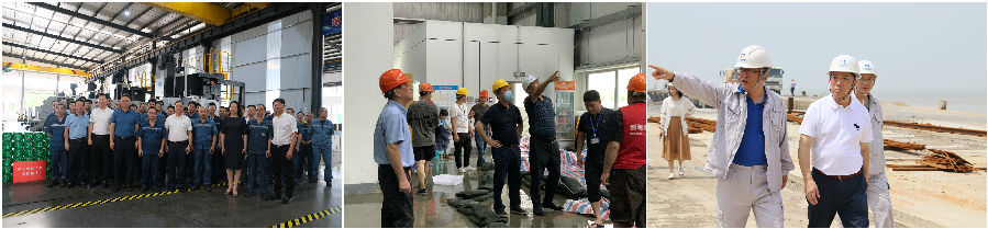 From July 20th to 30th, on behalf of Ningshing Holdings’ Board of Directors, Senior Management Team, Company Party Committee and Labor Union, the major administrative personnel, namely Chairman Wu Yigang, Vice Chairman, Party Secretary Gao Ping, President Huang Yongzeng, and Executive Vice President Tan Zhengguo, successively visited Ubay Logistics, Ningshing Tank Terminal, Ningshing Precision Machinery Group, Yoyou Feed, Ningbo Sunflower Shading Equipmen, SINOMACH Ningshing Automobile and Ningshing Ship Building & Repairing, expressed solicitude to the front-line employees who stuck to their posts, worked hard in intense heat and fought with typhoon In-fa.
