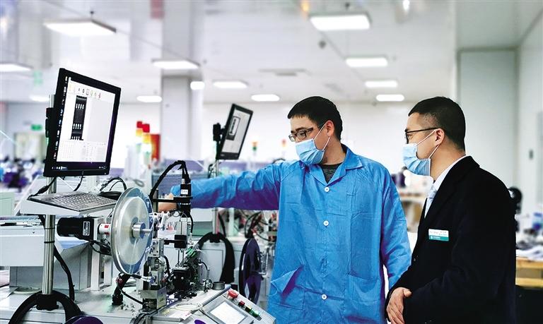 今年以來,中國農(nóng)業(yè)銀行加大助企紓困支持力度,截至3月底,普惠型小微企業(yè)貸款余額1.6萬億元,新增2799億元,增速21.2%;貸款戶232萬戶,新增41萬戶。圖為浙江浦江縣的鋒華創(chuàng)芯微電子有限公司的生產(chǎn)車間,當(dāng)?shù)剞r(nóng)行工作人員現(xiàn)場了解外貿(mào)企業(yè)出口情況,幫助企業(yè)解決融資難題。 黃麗娜攝(中經(jīng)視覺)