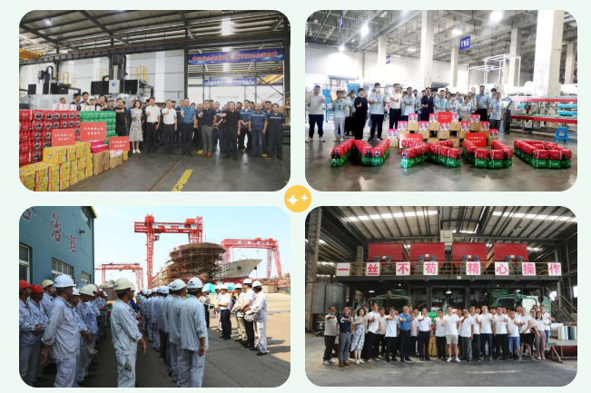 今年的高溫天氣來得早、持續(xù)時(shí)間長,罕見的持續(xù)高溫給辛苦奮戰(zhàn)在生產(chǎn)一線的廣大員工們帶來了極大挑戰(zhàn)。近日,寧興控股董事長吳以剛,副董事長、黨委書記、工會(huì)主席高屏,總裁黃永增,常務(wù)副總裁談?wù)龂阮I(lǐng)導(dǎo)深入寧興精密機(jī)械集團(tuán)、寧興優(yōu)貝物流、舟山寧興船舶、寧興涌優(yōu)、寧興液化、森福戶外遮陽、國機(jī)寧興豐田汽車等有關(guān)公司和生產(chǎn)基地,代表寧興控股董事會(huì)、總裁室、公司黨委、工會(huì)慰問了堅(jiān)守崗位、辛勤勞動(dòng)的寧興一線員工,帶去公司的關(guān)懷,為他們送上防暑降溫的慰問品。同時(shí),公司進(jìn)行了安全生產(chǎn)和文明經(jīng)營檢查。