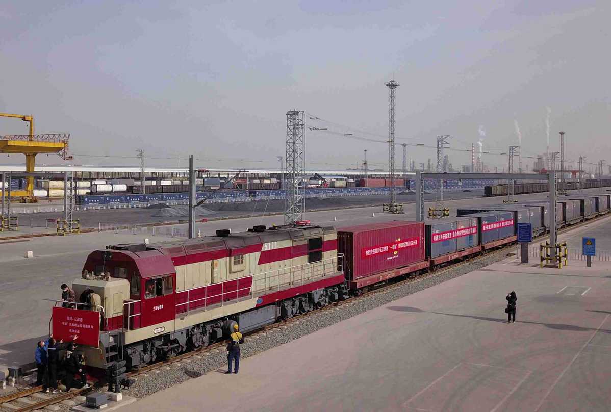 A freight train carrying containers for export departs from Yinchuan, Ningxia Hui autonomous region, for Tianjin in March. YU JING/CHINA NEWS SERVICE