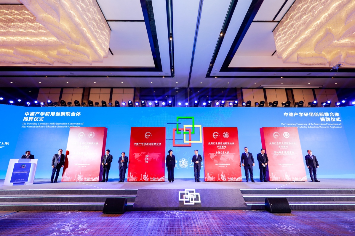 The unveiling ceremony of the Innovation Consortium of Sino-German Industry-Education-Research-Application in Shanghai, Nov 27, 2022. [Photo provided to chinadaily.com.cn]