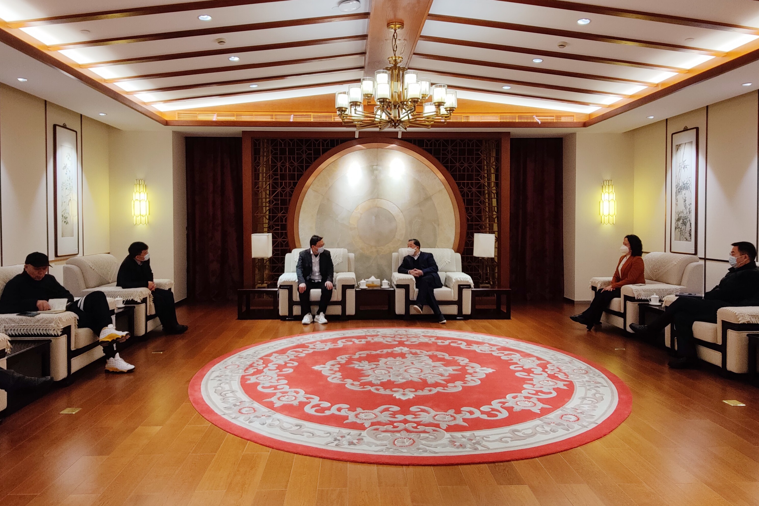 On January 12th, Mr. Wu Yigang, Chairman of Ningshing Holdings, met Zhang Liang, General Manager of Ningshing Dominican DJM Rubber Shoes Production Base, who had just returned to China for debriefing. Ms. Gao Ping, Vice Chairman and Party Secretary of Ningshing Holdings, Mr. Tan Zhengguo, Executive Vice President, Mr. Zhang Lei, General Manager of Ningshing Trading Group, and Mr. Tong Xiaojian, General Manager of Rubber Shoes Division attended the meeting.