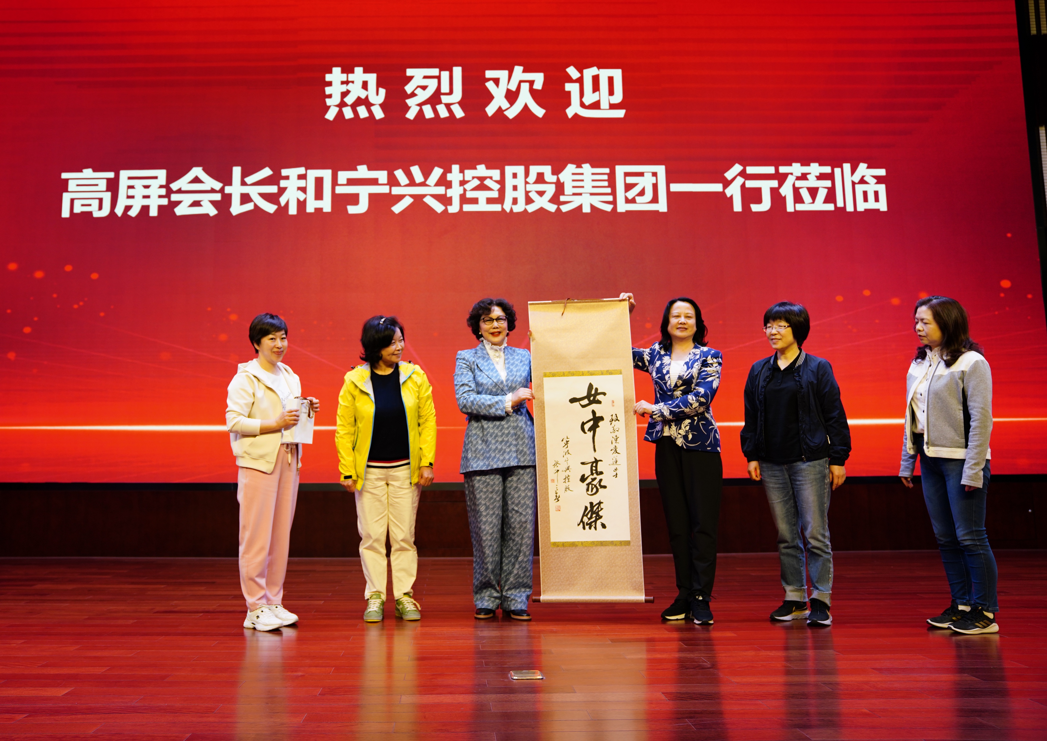 寧興控股副董事長、黨委書記高屏感謝陳愛蓮主席精彩真誠的分享。她表示陳主席是中國創(chuàng)業(yè)女性的杰出代表,她愛黨愛國的信念,勇立潮頭的膽略,堅韌不拔的毅力,不斷創(chuàng)新的理念,以及博大的產(chǎn)業(yè)報國、奉獻社會情懷,值得所有女性學習。特別是陳主席“創(chuàng)業(yè)是快樂的,生活是幸福的,追求是藝術的”三點人生感悟,值得細細品味。同時,她對全體女員工提出了三點希望:要有格局和夢想,保持定力和向上的生長力;要堅守和堅持,永葆初心、篤行不怠;要有感恩之心珍惜當下。她邀請陳主席有空到寧興做客,并敬贈“女中豪杰”書法作品,送上寧波生產(chǎn)的G20峰會元首筆,寓意陳主席繼續(xù)書寫著自己的精彩人生。