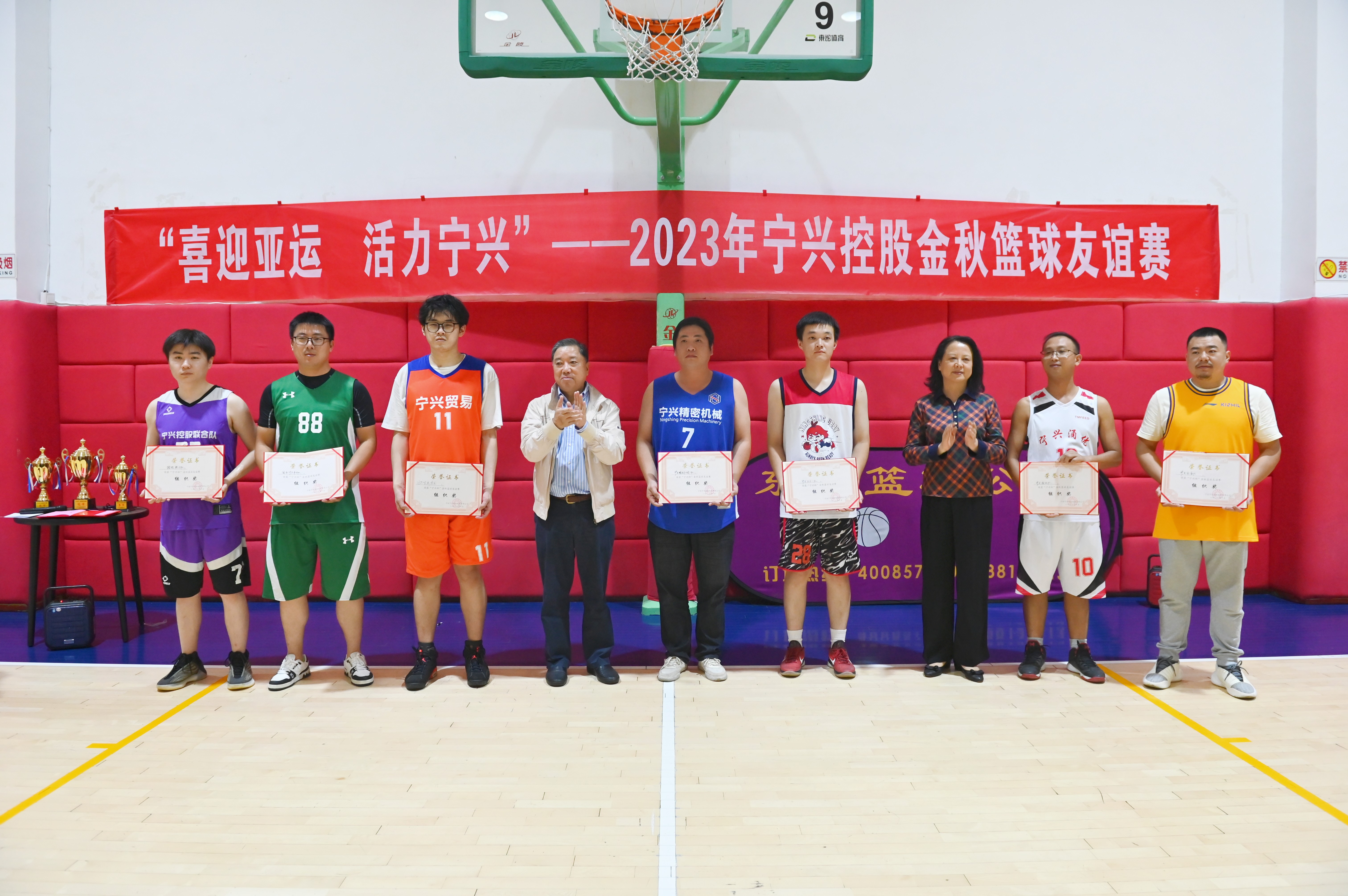 After more than one month of 24 marvellous group matches, ten teams (nearly 80 basketball players) finally made it to the final state of the Ningshing Basketball Tournament, bringing a successful conclusion to the Basketball Tournament on October 18th. The playoff game was successfully held in Ningbo Bayi Fubang Basketball Center. Ningshing Hench won the championship, Ningshing Ubay and Ningshing Precision Machinery Group won the runner-up and third place respectively, and the other seven companies won the best organization prize. Mr. Wu Yigang, Chairman of Ningshing Holdings, Ms. Gao Ping, Vice Chairman and Secretary of the company’s Party Committee, and heads of the subsidiaries cheered for the basketball players and presented trophies and certificates to the winners.