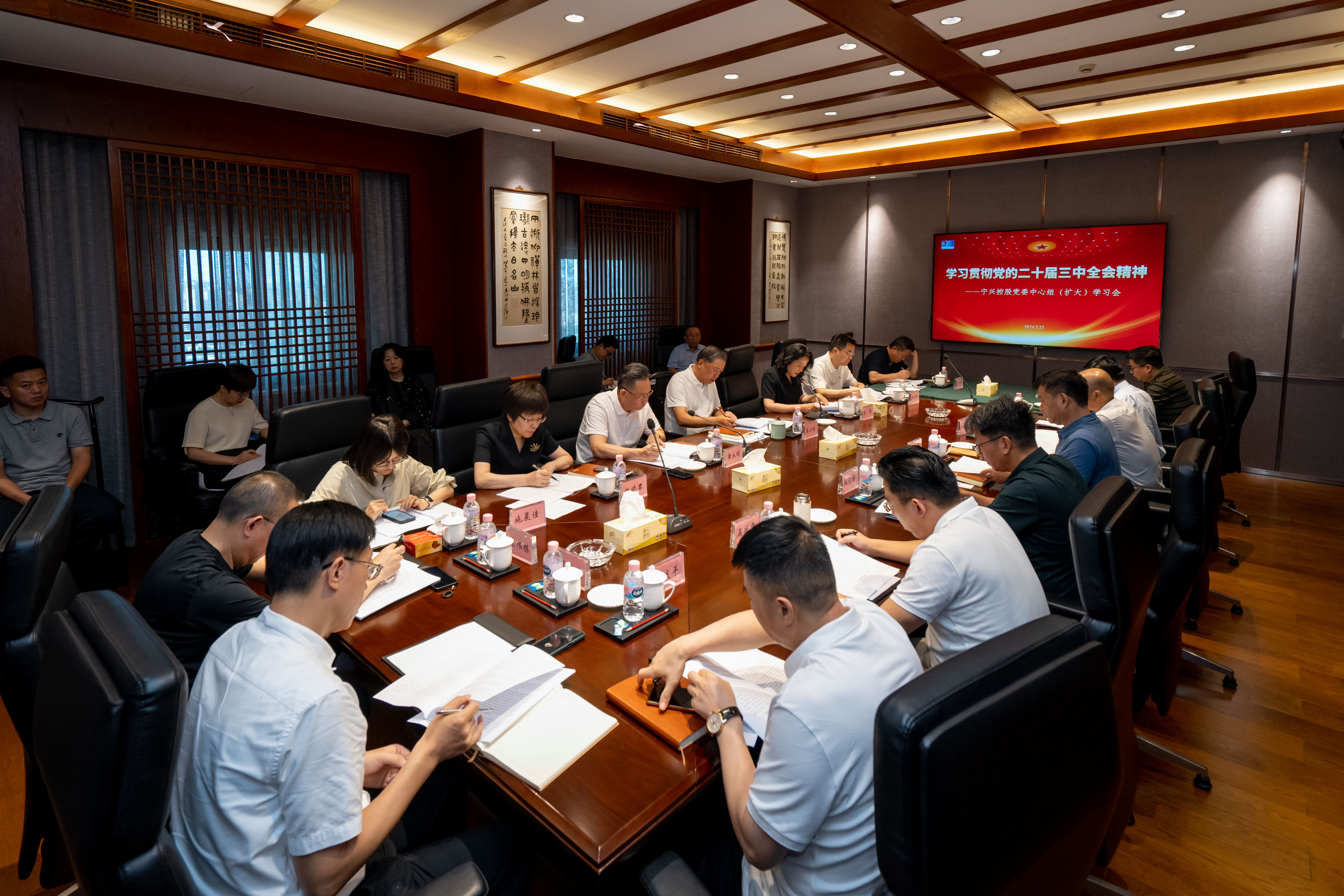 Firstly, the meeting commenced with a study session dedicated to the Party Committee of Ningshing Holdings. Mrs.Gao Ping read the “Resolution of the Central Committee of the Communist Party of China on Further Deepening Reform Comprehensively to Advance Chinese Modernization” issued by the Third Plenary Session of the 20th Central Committee of the Communist Party of China.She emphasized the importance for all companies and party organizations at all levels to earnestly study and comprehend the spirit of the plenary session, urged them to recognize the general trend, seize opportunities, and seek development.