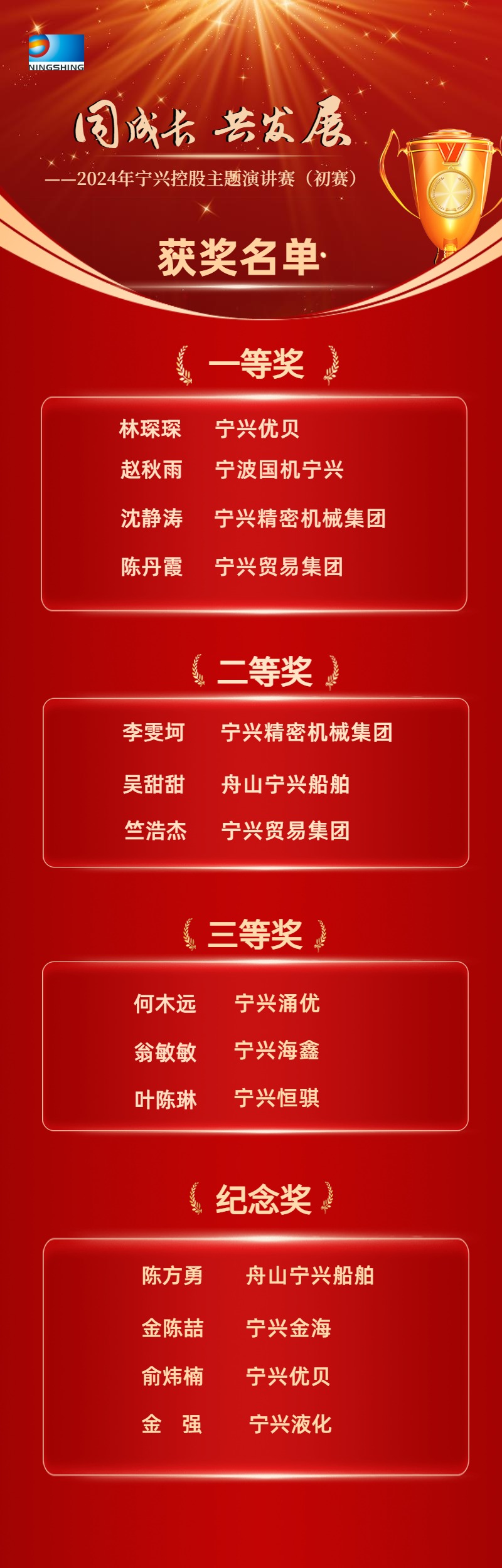 最后,高屏副董事長對比賽進行總結點評。她強調“同成長 共發(fā)展”,是寧興最根本的文化理念,也是公司發(fā)展的終極目標,是全體員工加入寧興、融入寧興、建設寧興和共享寧興的最大意義。選手們從不同角度詮釋了自己對這個主題的理解,真情流露,鼓舞人心,是一次充滿正能量、積極向上的比賽。她也從演講技巧、情感抒發(fā)、效果展現(xiàn)等多維度對各位選手的表現(xiàn)進行點評,鼓勵大家持續(xù)學習,不斷提升,并以演講賽為新的起點,繼續(xù)迸發(fā)奮進的激情,為沖刺年度目標共同努力!
