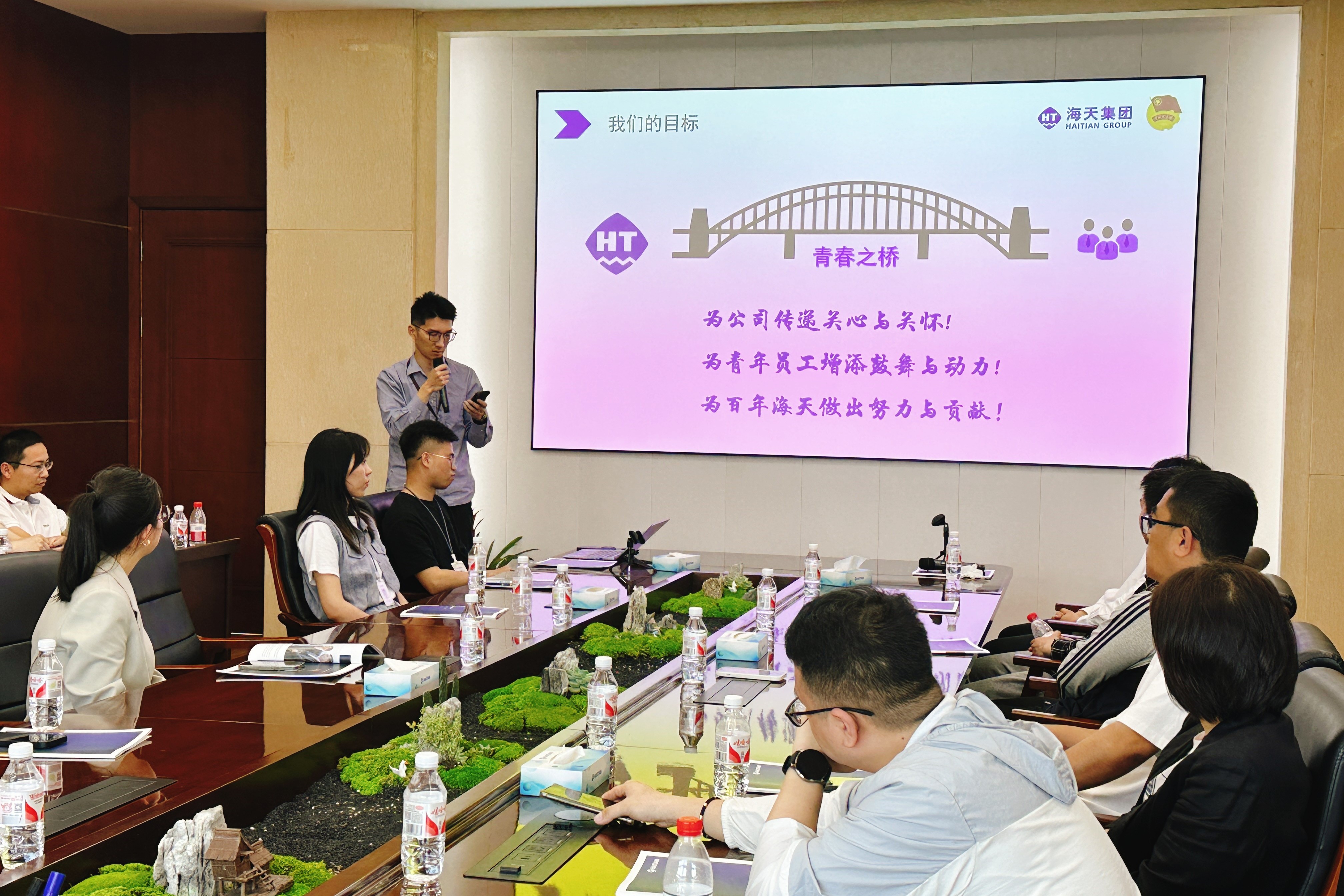參觀結(jié)束后,青年員工與海天團(tuán)委進(jìn)行互動(dòng)交流。海天團(tuán)委書記鄭軍瑤介紹了海天團(tuán)委工作基本情況、團(tuán)委工作目標(biāo)、主題活動(dòng)開展情況等,就如何搭建好公司與青年員工之間的青春橋梁做具體分享。郭未已副書記、郭弈含委員等結(jié)合自身成長經(jīng)歷,分享如何突破成長瓶頸、緩解焦慮,如何以熱愛驅(qū)動(dòng)奉獻(xiàn)等。雙方還就全球化業(yè)務(wù)運(yùn)維、人才培養(yǎng)等議題展開交流。