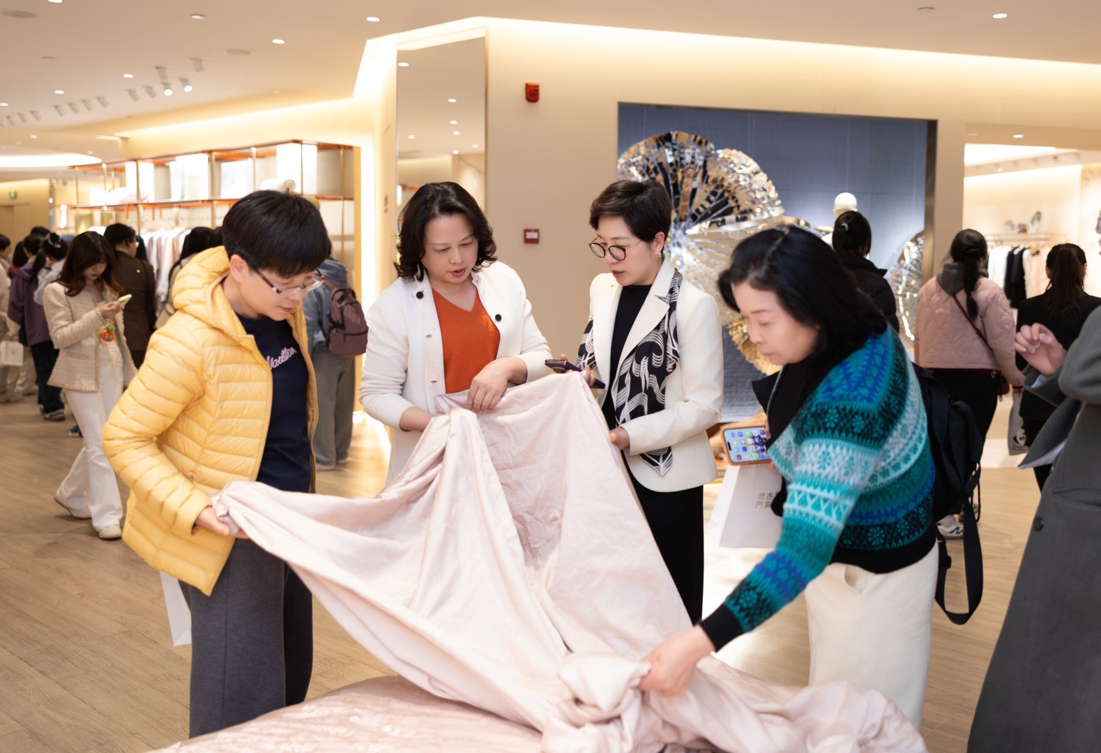 In the morning, the group visited Prince Bay Park by West Lake, appreciating the vibrant spring scenery and taking photos amid blooming tulips. In the afternoon, they toured Wensli Group’s Silk Art Museum, Ms. Shen Aiqin Memorial Hall and Corporate Culture Museum, gaining a deep understanding of the enterprise’s brand heritage, entrepreneurial spirit and innovative practices in the silk industry.