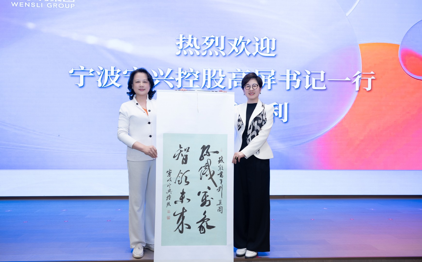 Ms. Gao Ping, Vice Chairman and Party Secretary of Ningshing Holdings, presented a calligraphy work inscribed with Silk Weaves Wonders, Intelligence Leads the Future to Wensli Group as a token of respect. In return, Ms. Tu Hongyan presented skincare gifts to all female participants.