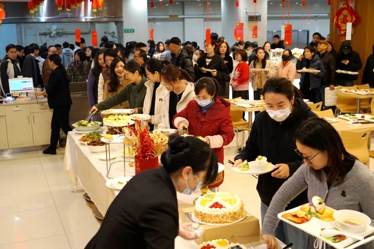 Colorful lantern riddles were hung at the canteen with interesting puzzles. staffs took an active part in the game, with laughter and joy filling the air. The canteen was full of delicious food, including sweet tangyuan and various dishes. All the staff enjoyed the festival’s warmth and happiness through the food.
