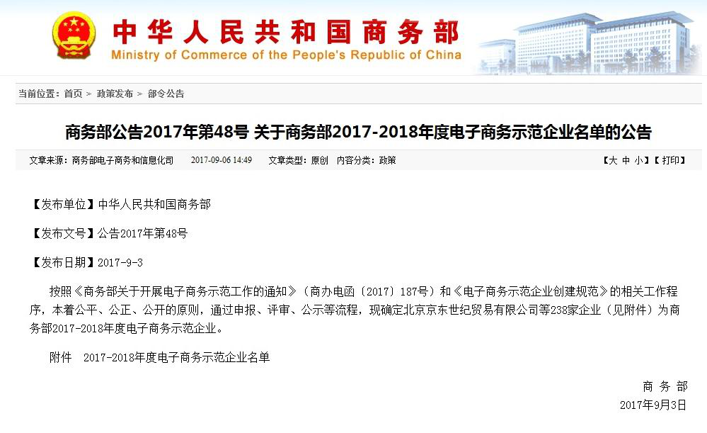 寧興優(yōu)貝入選商務(wù)部2017-2018年度電子商務(wù)示范企業(yè)