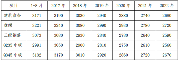 2、表列1-8月價格為鋼協(xié)統(tǒng)計實際結算價格,9-12月按降5%測算全年;