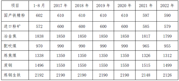 2、除“國產鐵精粉”按鋼鐵協(xié)會CIOPI國產精礦價格測算外,表列1-8月其他品種價格為鋼鐵協(xié)會統(tǒng)計企業(yè)結算價格。