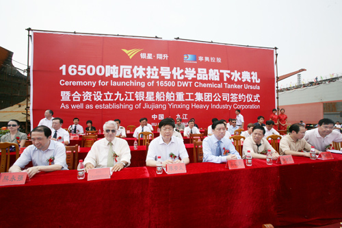 寧興控股與九江銀星船廠聯(lián)合制造的16500噸化學(xué)品船順利下水!-合資設(shè)立“九江銀星船舶重工集團有限公司”簽約儀式隆重舉行 !