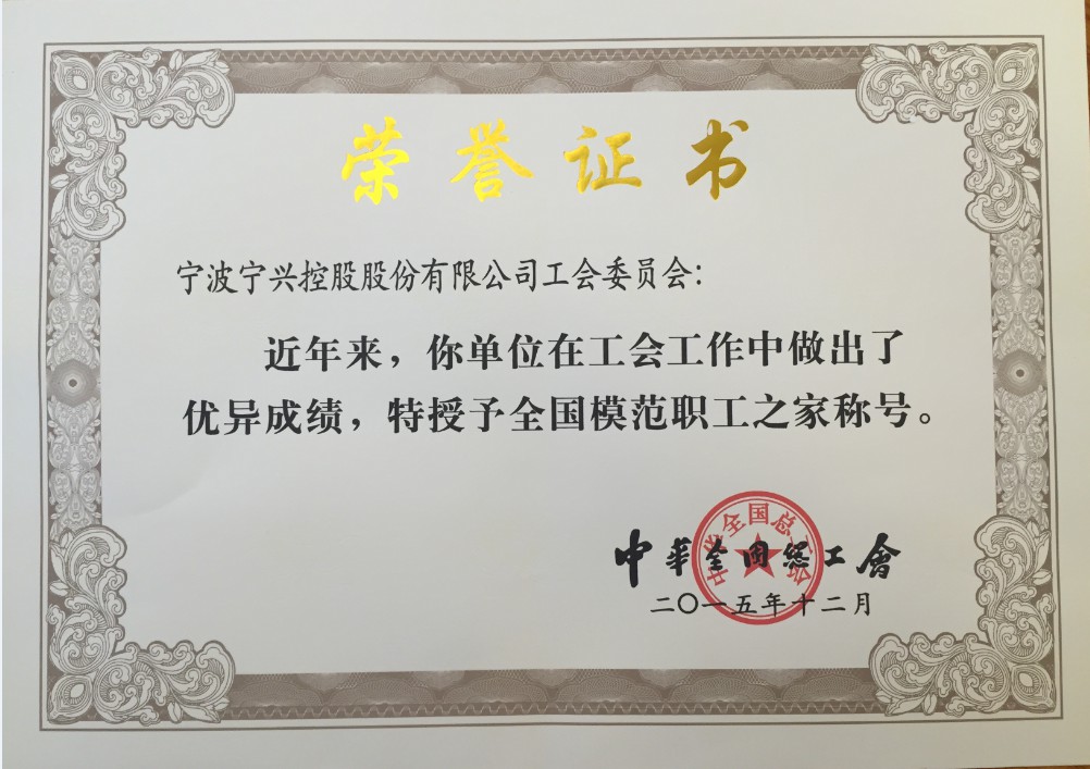 The labor union of Ningshing Holdings Corporation was entitled “Family of the national model staff” ...