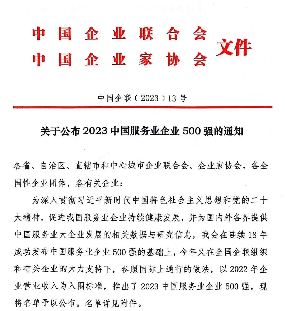寧興控股繼續(xù)入選2023中國服務(wù)業(yè)企業(yè)500強(qiáng)2023-10-06
