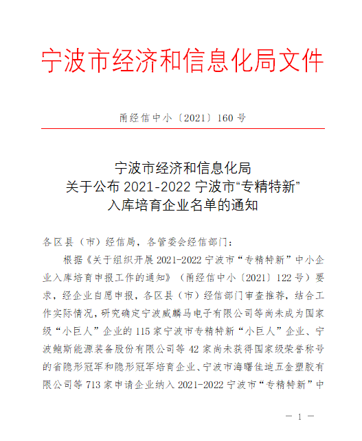 寧興精密制造有限公司入選寧波市“專精特新”中小企業(yè)培育庫(kù)2021-10-22