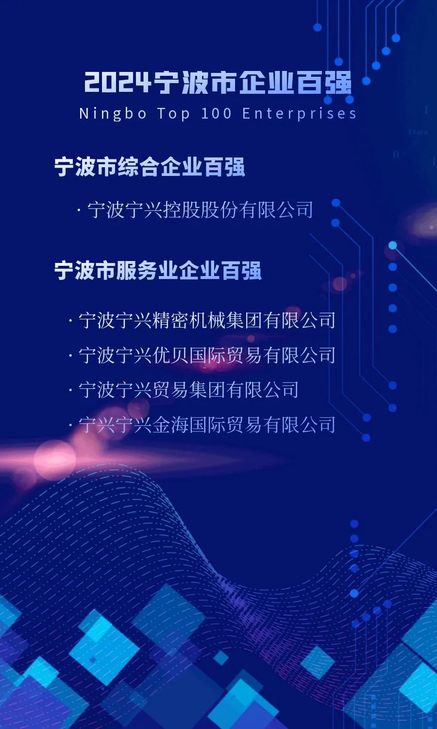 寧興控股及旗下多家企業(yè)入選“2024寧波市企業(yè)百?gòu)?qiáng)”榜單2024-08-30