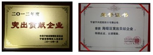 寧興控股被授予“海曙區(qū)突出貢獻(xiàn)企業(yè)”榮譽(yù)稱號2013-01-05