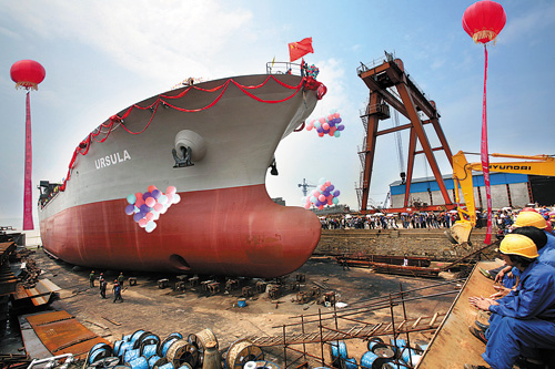 6月25日上午10時58分,寧興控股與九江銀星造船公司聯(lián)合制造的16500噸“厄休拉”號化學品船在九江市星子縣順利下水。依靠沙灘斜坡,“厄休拉”號在氣囊上緩緩向湖面移動,約過30秒整艘化學品船進入鄱陽... -