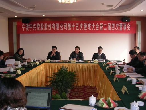 寧興控股第十五次股東大會(huì)暨二屆四次董事會(huì)在江西省九江廬山龍灣溫泉度假村會(huì)議室召開(kāi)。會(huì)議審議批準(zhǔn)了年度總裁工作報(bào)告、年度財(cái)務(wù)預(yù)決算報(bào)告、年度公司投資情況報(bào)告等,批準(zhǔn)了年度利潤(rùn)分配方案、關(guān)于公司增資擴(kuò)股的... -